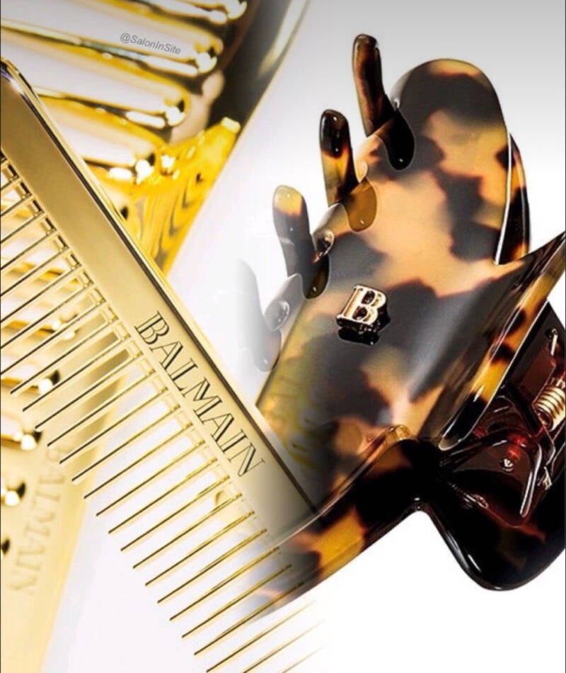 Balmain Haar Accessories neu bei uns! Wunderschöne Handgefertigte Haarspangen und Haarreifen mit 18 Karat vergoldeten Logo. Das extrem starke und dennoch flexible Material ist hypoallergen und sanft zu Haar und Kopfhaut.